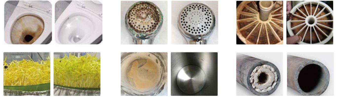 Applications : hôpitaux, systèmes d’osmose inverse, systèmes d’injection d’eau et de vapeur pipelines, exploration pétrolière, pipelines de collecte de pétrole à puits unique, puits de pétrole, puits de gaz, pompes et oléoducs, tours de refroidissement, grandes chaudières, échangeurs de chaleur à plaques, chaudières à source de chaleur, pipelines de chaudière de chauffage, divers systèmes de refroidissement dans différentes conditions, industrie de l’aluminium (échangeurs de chaleur), fabrication chimique (usines chimiques), industrie du bois (transformation du bois), industrie automobile (fabrication automobile), production alimentaire (transformation des aliments), industrie maritime (transport maritime et de marchandises), industrie textile (production textile), industrie du caoutchouc (production de caoutchouc), industrie plastique (moulage par injection), raffineries (procédés de raffinage), traitement des eaux usées (stations d’épuration), industrie du papier (fabrication du papier et processus d’impression).