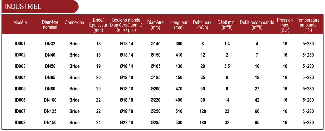 Plusieurs modèles sont disponibles dans chaque série, adaptés à des besoins différents en débit d'eau (voir tableaux).
