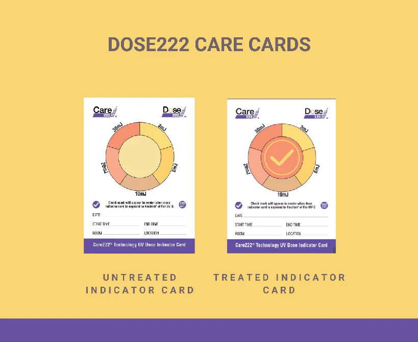 Les cartes dosimètres UV-C 222nm Care222® de Ushio fournissent la preuve visible d'une désinfection réussie. Elles permettent de vérifier l'efficacité des lampes UV-C 222nm équipées d'un module Care222®, et ainsi s'assurer que les surfaces et l'équipement ont reçu la quantité souhaitée d'UV-C 222nm pour tuer les agents pathogènes nuisibles.