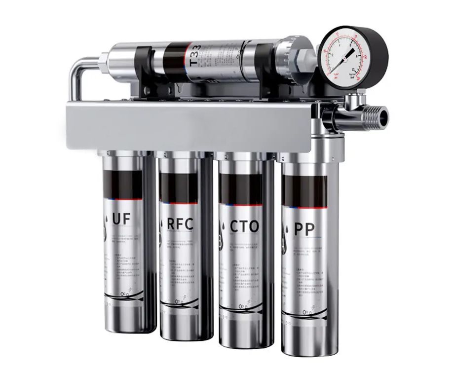 - Un filtre à membrane d'ultrafiltration UF qui élimine les bactéries, les virus, les spores et autres impuretés nocives pour la santé humaine.