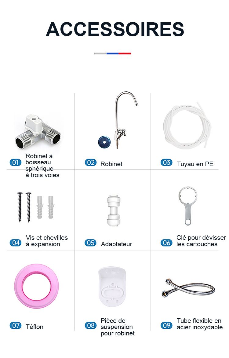 Ce système pour robinet possède 5 niveaux de filtration > 5 filtres qui se changent facilement :