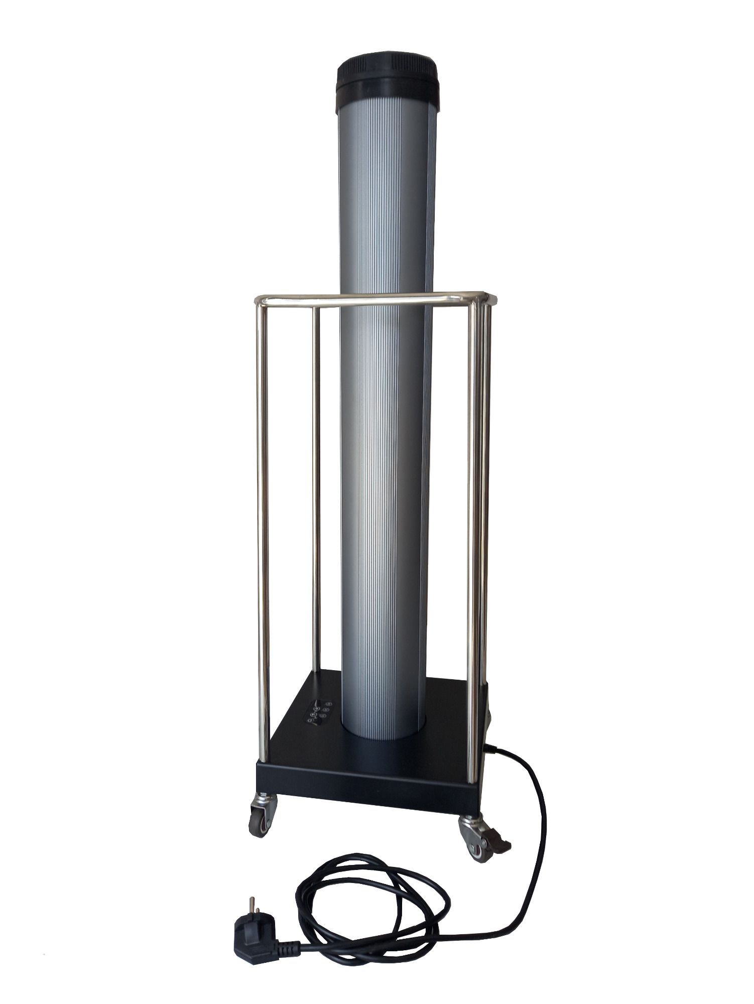 Cette lampe de désinfection est dotée de 4 tubes UV-C 254nm. Elle est montée sur un chariot disposant de 4 roulettes pivotantes, dont 2 sont autobloquantes. Celles-ci permettent de la déplacer facilement, sans avoir à la soulever.