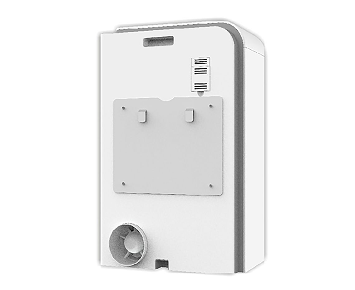 Ce modèle est différent des autres : en plus de traiter l'air intérieur, il aspire de l'air frais venant de l'extérieur avant de le traiter et de le renvoyer dans la pièce. Ce système augmente le confort car il permet d'avoir de l'air sain sans ouvrir les fenêtres et donc réduit les pertes d'énergie. Il suffit de percer un trou dans le mur où il sera fixé, pour y placer le tube pour l'aspiration. Les pièces nécessaires à l'installation sont fournies avec l'appareil.