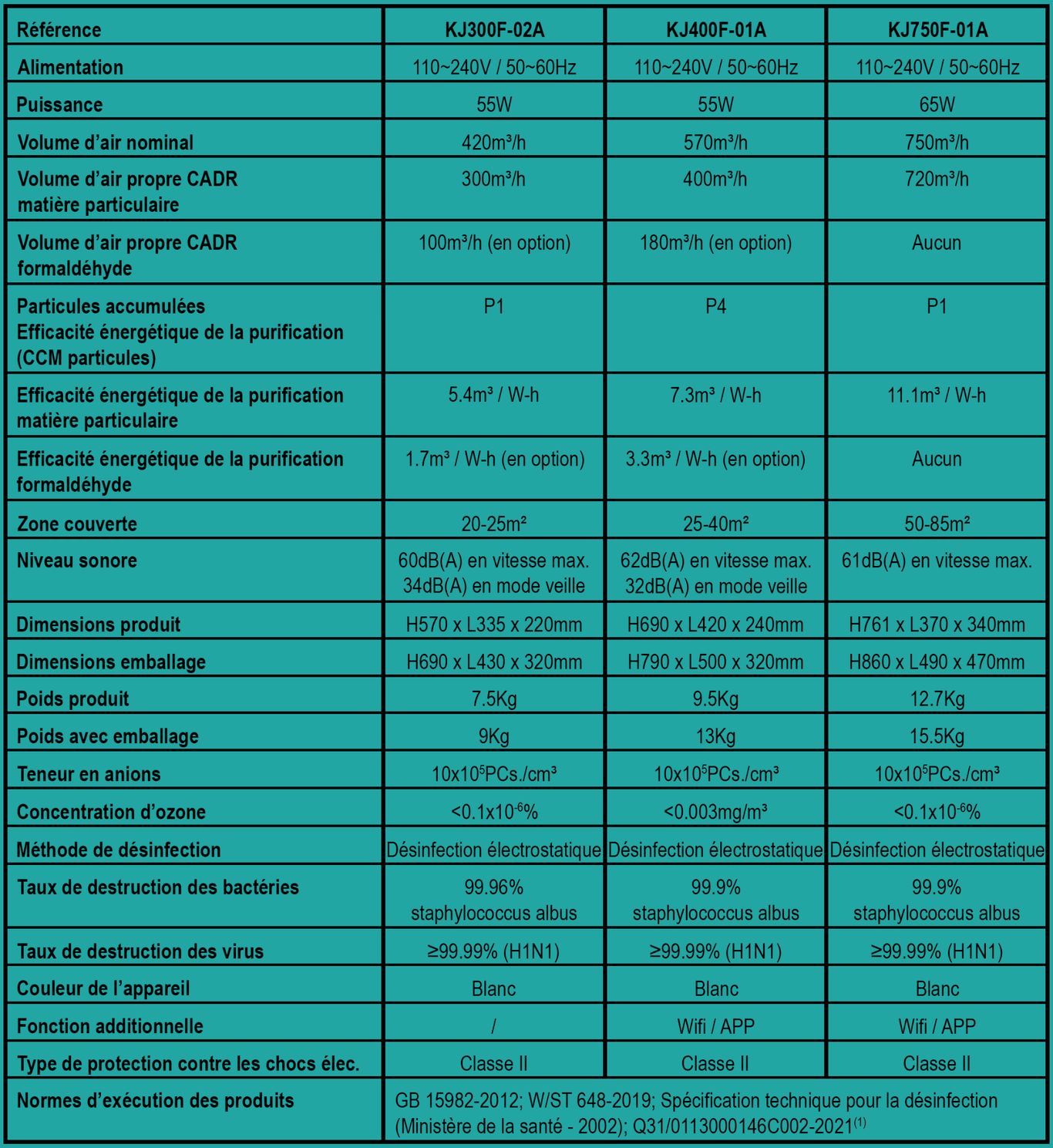 - Contrôle par APP mobile (IOS/Android APP avec Tuya Wifi) pour les modèles KJ400K-01A et KJ750F-01A.